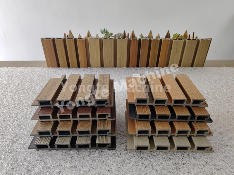 WPC peleti se stavljaju u liniju za ekstruziju Yongte WPC profila. Oprema ima specijalno dizajniran konusni ekstruder s dva vijka, glavu i kalup posebno napravljen za drvene plastične materijale, online 3D uređaj za utiskivanje, sistem za hlađenje velike brzine, moćan uređaj za vuču i automatski sistem rezanja. Proizvodni proces je efikasan i stabilan, a svaka karika je precizno kontrolisana, što značajno poboljšava kapacitet proizvodnje; WPC proizvodi koje proizvodi ova mašina imaju stabilne dimenzije, uredne rezne površine bez ivica, realistične i živopisne strukture drveta i odlične performanse proizvoda.