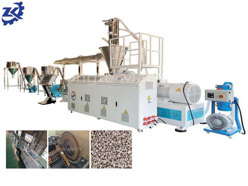 Smjesa se transportira u janul za granulaciju Yongte WPC pomoću utovarivača za vijke ili utovarivaču vakuumskim utovarivačem. WPC granulacijska mašina opremljena je visoko efikasnim ekstruderom vijčane vijke posebno dizajnirane za drveni plastični sastav, visokog brzog peletiziranog sistema za peletiranje ili sustav drobljenja i brz trostepeni sistem hlađenja zraka. Omjer drvenog praha može dostići 60-70%, a proizvedeni WPC peleti su ravnomerno miješani i dobro plastificirani kako bi se osigurala kvalitet konačnog proizvoda.
